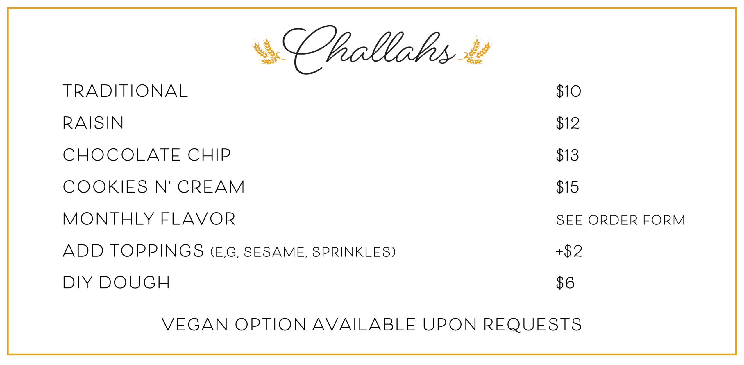 Send an email to place your order, kneadnnosh@gmail.com. Orders are ready on Friday’s for pick-up in Agoura Hills.